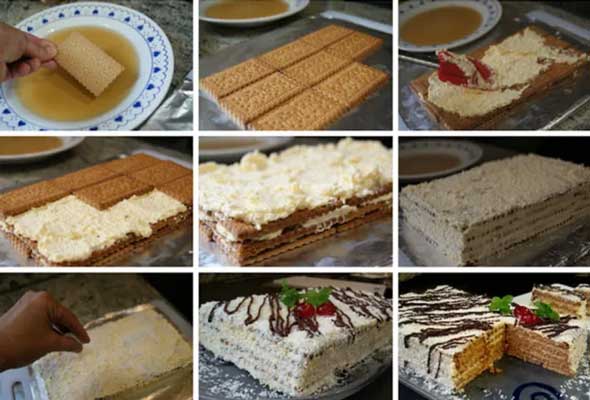 - Vá alternando camadas de bolachas e creme até esgotar os ingredientes.